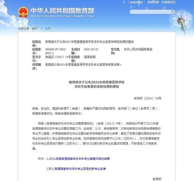 据了解,此次全国专业增、撤工作共涉及2765个专业布点,占目前本科专业布点总数的4.6%。支持高校服务国家战略和民生急需,设置了储能科学与工程、集成电路设计与集成系统、密码科学与技术、种子科学与工程、非物质文化遗产保护、养老服务管理、预防医学、护理学、健康服务与管理、应急技术与管理等一批专业布点。