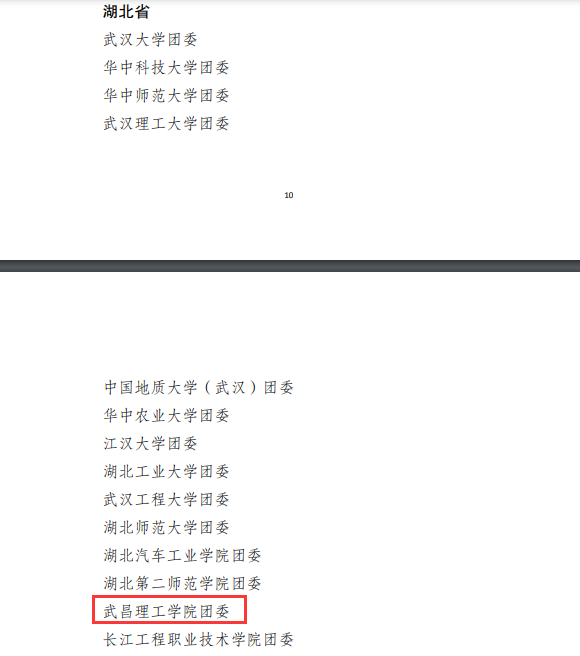 中南在线12月17日消息(大通社记者 孙涵 报道)近日,团中央公示2021年度社会实践活动总结通报结果,武昌理工学院团委荣获2021年全国大中专学生志愿者暑期“三下乡”社会实践活动优秀单位荣誉,全省仅11所高校获此殊荣,武昌理工学院是湖北省唯一上榜的民办高校。