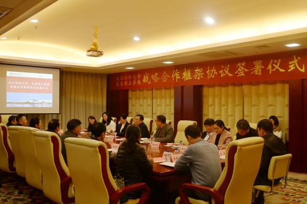 武汉纺织大学党委副书记黄国辅、党委常委兼副校长黄运平、学校办公室主任杜新年、人事处处长高建勋、教务处处长何畏、图书馆馆长熊少平、计算机与人工智能学院院长胡新荣,武昌理工学院党委书记汪继平、副校长崔海容、党委副书记林娟、校长助理兼教务处处长杨灼芳等参会。会议由武昌理工学院党委副书记林娟主持。