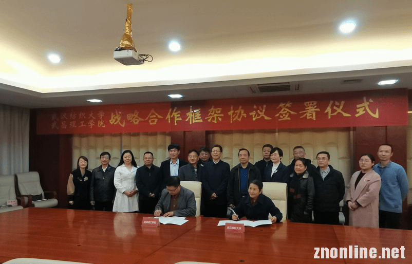 武汉纺织大学副校长黄运平和武昌理工学院副校长崔海容分别代表各自学校签署了战略框架协议。据了解,双方确定在联合开展人才培养与交流、联合开展师资培训与交流、开展科技协同创新、开展条件资源共享等领域开展合作。战略合作框架协议还确定了建立校际联席会议制度,每年召开一次联席会议,研究决定双方合作重大事宜。双方相关业务部门建立部门衔接落实制度,加强沟通协商,提出工作举措,落实合作事项。围绕战略合作框架协议,双方还进行了深入交流。会议圆满结束,双方参会人员进行合影留念。