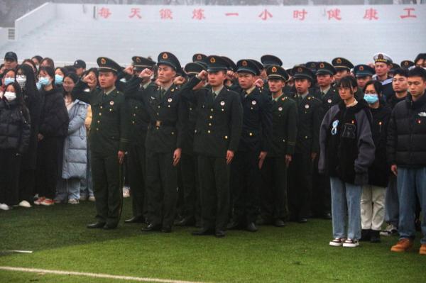 1937年12月13日,84年前的今天,侵华日军攻占南京,30多万同胞惨遭血腥屠杀。12月13日是第八个南京大屠杀死难者国家公祭日,当日上午6时50分在运动场举行了升旗仪式,同学们集体为南京大屠杀的30万遇难同胞默哀。在场成员见证了国旗升起后,又徐徐降下,现场的人都面部严肃。大家为在南京大屠杀中惨遭杀害的同胞们脱帽、低头默哀……