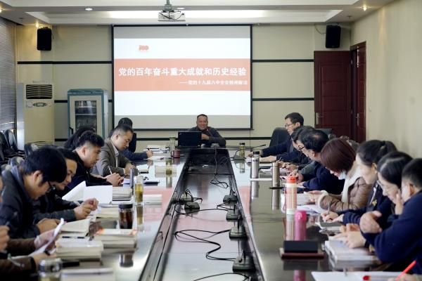 校党委书记汪继平同志强调,党的十九届六中全会是中国共产党在百年华诞的重要时刻,在“两个一百年”奋斗目标交汇的重要历史关头召开的一次具有重大现实意义和深远历史意义的会议。全会审议通过的《中共中央关于党的百年奋斗重大成就和历史经验的决议》,全面总结党的百年奋斗重大成就和历史经验,深刻揭示过去我们为什么能够成功、未来我们怎样才能继续成功的基因和密码,充分彰显我们党高超的政治智慧和责任担当、高度的历史自觉和历史自信,是一篇马克思主义纲领性文献,是新时代中国共产党人牢记初心使命、坚持和发展中国特色社会主义的政治宣言,是以史为鉴、开创未来,实现中华民族伟大复兴的行动指南。