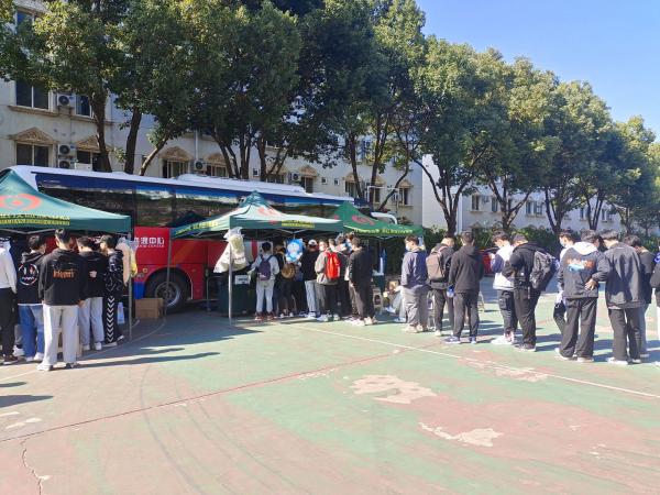 中南在线消息(大通社见习记者 余亚男 报道)无偿献血,用爱心为生命加油。11月10日上午,武昌理工学院青年志愿者协会协助武汉血液中心开展了一场以“奉献一滴血,生命海处流”为主题的无偿献血活动。两辆献血车分别停在武昌理工学院樱园篮球场和实验教学中心门口,学生们纷纷踊跃献血,一天内累计献血量高达135580毫升。