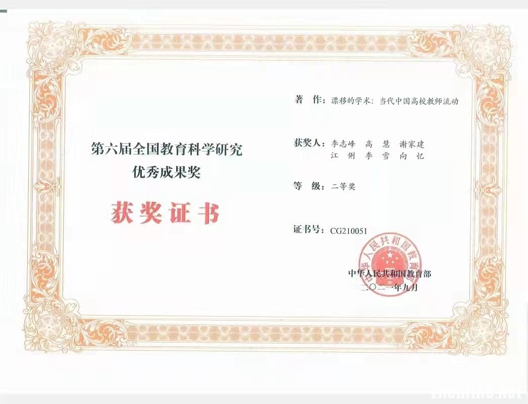 中南在线11月10日消息(记者 鲁信 报道)近日,教育部印发《关于公布第六届全国教育科学研究优秀成果奖评选结果的通知》(教办函〔2021〕12号),经专家评审、面向社会公示和评奖委员会审核通过,共有344项成果获奖,其中一等奖26项、二等奖119项、三等奖199项。由李志峰教授等著,武昌理工学院教师向忆作为主要完成人之一参与的著作《漂移的学术:当代中国高校教师流动》荣获二等奖。