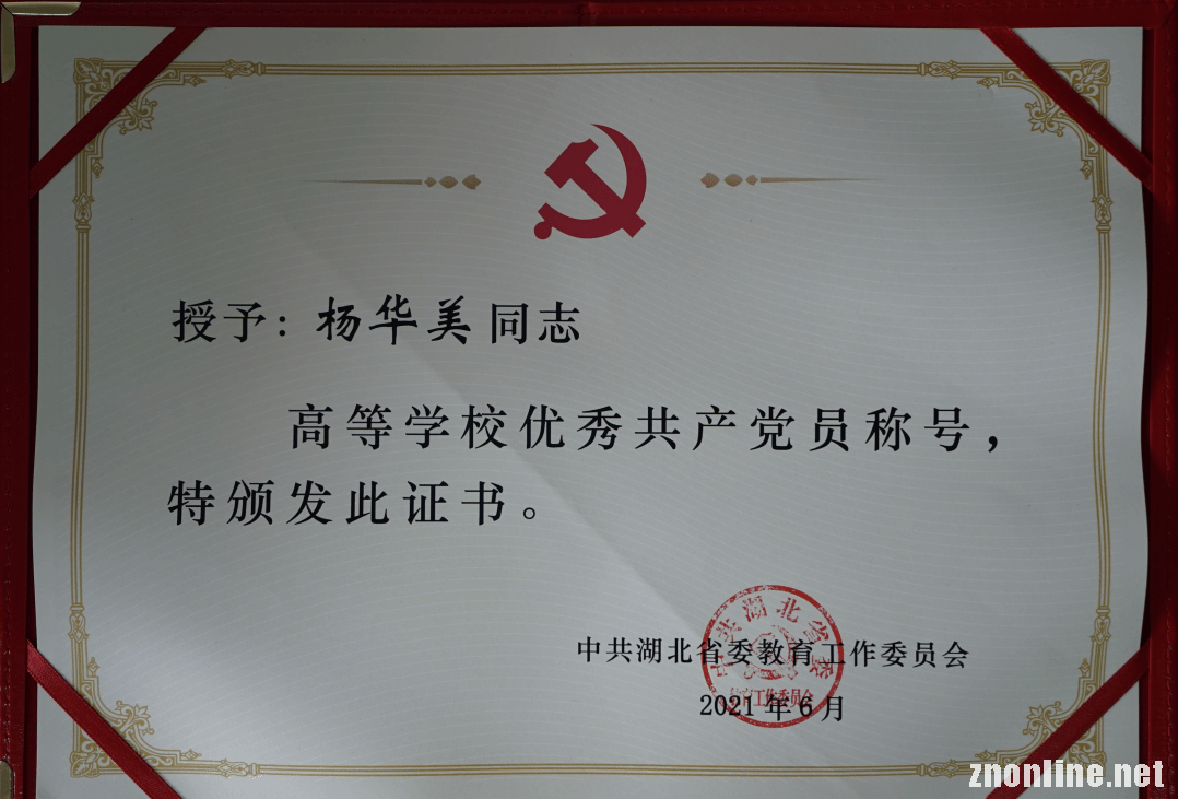博士教师潜心科研,发表论文二十余篇,今年6月,杨华美在武昌理工学院第七届魅力人物评选中获评十大魅力人物。七一前夕,她又获评“湖北省高校优秀共产党员”,她说,荣誉的获得,是她继续奋斗的新的起点。