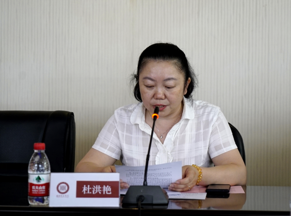 武昌理工学院科研处处长杜洪艳主委代表第二届民盟武昌理工学院委员会作工作报告