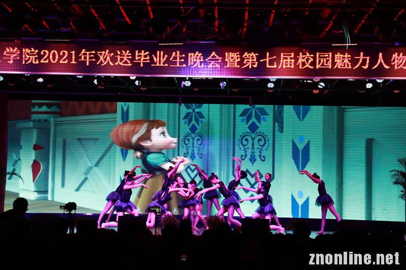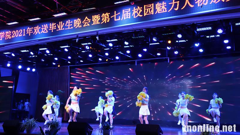 啦啦操《Get up》激情四射;歌曲《外面的世界》悦耳动听;舞蹈《那时红光照我心》扣人心弦,展现了影视传媒学院学生扎实的专业能力;商学院文艺团的同学们为毕业生们带来舞蹈《We rock》将全场的气氛拉向高潮,她们将对毕业生们的不舍和对未来的美好祝愿融入这个青春洋溢的舞蹈里,用翩翩舞姿欢送2021届毕业生。她们身着校园风服装,伴随着音乐的响起,面对观众席以“正三角”的队形亮相,跟随舞蹈的节奏灵动起舞,在手臂摆动的同时,踮起脚尖,做出望向远方的动作,呈现的是自己朝气蓬勃的身姿以及对未来的憧憬。歌舞《怀念青春》《奔跑的青春》则展示了毕业生们的感恩和祝福之情。