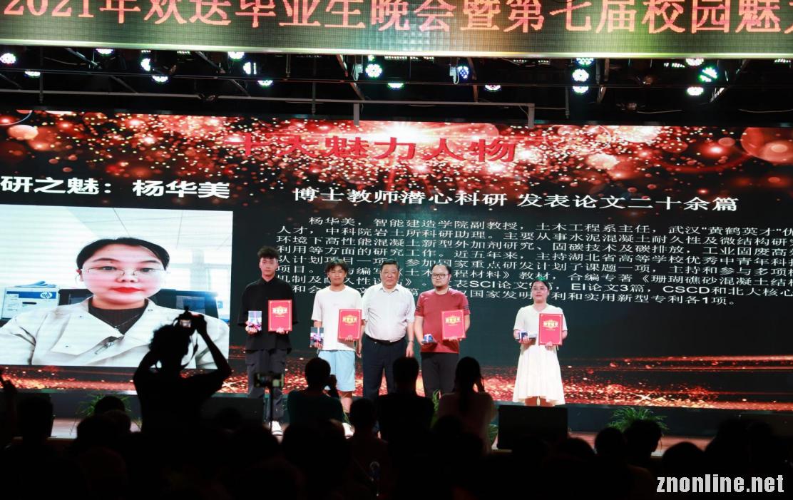 十大魅力人物(团队)颁奖 摄影 王奕捷 刘世超 繁荣校园文化,凝练大学精神 武昌理工学院隆重举行第七届魅力人物颁奖典礼 打造成学校最具影响力的文化品牌和文化名片 中南在线6月9日消息(记者 鲁信 报道)“以独特的魅力影响人,以先进的事迹教育人,以向上的力量鼓舞人,以健康的文化熏陶人。”6月9日晚,武昌理工学院第七届魅力人物颁奖典礼暨欢送毕业生晚会在大学生活动中心三楼梅南礼堂隆重举行。校党委书记汪继平、董事长彭元杰、党委副书记林娟、纪委书记刘铭华、校长助理杨灼芳、校长助理蔡贤浩、党委宣传部部长邓万民、党委学工部部长李金永以及各学院、各处室领导、全体素质导师和2021届毕业生代表1000余人参会。 据了解,“魅力人物”评选活动是武昌理工学院影响最大的文化活动之一,魅力人物也是该校授予师生的最高荣誉奖项之一。该活动自2009年举办以来,迄今已经成功举办了六届。第七届“魅力人物”评选活动自今年3月启动以来,受到广大师生的广泛关注和积极参与,100余个先进典型被推荐为候选人。 “魅力是一种品格,魅力是一种影响力。学校呼唤魅力人物,魅力人物推动学校发展。我校‘魅力人物评选活动’现已成为我校的文化品牌和文化名片,已成为学校精神文明建设和校园文化建设的一个精品工程。”校党委书记汪继平在致辞中说,第七届“魅力人物”评选活动受到广大师生校友的广泛关注和积极参与,激发了师生向先进人物学习的热情,达到了繁荣校园文化,凝练大学精神的目的。 汪继平指出,获得魅力人物的师生和校友,都在某一方面有着与众不同的先进事迹,在各自的岗位或领域具有独特的魅力,具有强大的典型示范意义。他提出三点希望,一是希望广大师生和全体校友以魅力人物为榜样,积极进取,追求卓越,走向成功!希望获评魅力人物的师生校友再接再厉,继续发挥模范带头作用,为学校发展注入新的动力和活力。二是希望魅力人物评选活动越办越好,真正打造成武昌理工学院最具影响力的文化品牌和文化名片,助推学校发展。三是希望广大毕业生把初心化为恒心,把使命化为担当,把理想化为奋,让青春闪闪发光!胸怀天下,放眼未来,成就伟业,为母校争光添彩! 活动现场揭晓了十大魅力人物(团队)和十大提名奖名单。获得十大提名奖的分别是:敬业之魅 阳小兰、钱程:夫妻搭挡教师 为一份“热爱”共同坚守二十年;战役之魅 盛蕾:“战役”红玫瑰冲在抗疫一线;自强之魅 马胜男:入围中国大学生年度人物 百生讲坛省级金牌主讲人;学习之魅 倪屹蓉:专业成绩第一名 荣获各类奖项40余项;就业之魅 广信精英班:22名学生全部优质就业;考研之魅 利亮:获12所世界名校硕士研究生录取通知书;志愿之魅 贡嘎:获评湖北省“大学生自强之星”;扶贫之魅 陈登:荣获全省脱贫攻坚先进个人;育人之魅 陈慧颖:辅导学生出版书籍30余部;献血之魅 黄希:荣获“全国无偿献血奉献奖”金奖。学校纪委书记刘铭华、校长助理杨灼芳、校长助理蔡贤浩、校党委常委、宣传部长邓万民教授、党委学工部部长李金永共同为他们颁奖。 经过调查核实、专家评审和网络投票等环节,最终评审出十大魅力人物(团队),他们分别是:励志之魅 张霁:入选华为“天才少年”项目最高档 最高年薪201万;校友之魅 解砾:湖北互联网产业的带头人 全国优秀创新创业导师;挑战之魅 挑战杯团队:在大学生课外学术科技作品竞赛上夺得10项目大奖;创新之魅 张颢哲:中国大学生以自强之星 湖北省第七届“长江学子”;捐赠之魅 许锐煜:为战役捐赠200多万元医用物资;教学之魅 熊伟:所带课程获批首批国家级一流本科课程;科研之魅 杨华美:博士教师潜心科研 发表论文二十余篇;社团之魅 退伍军人俱乐部:10名退伍军人全部考取研究生;奋进之魅 陈飞飞:大学3年荣获各类奖项200余项;竞赛之魅 余辉:获2020中国机器人大赛冠军。校党委书记汪继平、董事长彭元杰、党委副书记林娟分别为他们颁奖。 获得魅力人物的师生和校友,都在某一方面有着与众不同的先进事迹,在各自的岗位或领域具有独特的魅力,具有强大的典型示范意义。励志之魅张霁,毕业后攻读博士学位,2020年成功入选华为“天才少年”项目,并拿到最高档,年薪达201万,成为全民励志榜样;校友之魅解砾现为武汉互联网产业商会会长、红桃K集团股份有限公司党委书记、常务副总裁,是首批教育部全国优秀创新创业导师,首批湖北最年轻的产业教授;挑战之魅挑战杯团队在湖北省第十三届“挑战杯·中国银行”大学生课外学术科技作品竞赛中,共斩获两个一等奖,一个二等奖,六个三等奖,一个优秀组织单位奖,获奖数量和获奖等级突破历史新高;创新之魅张颢哲曾荣获“2019中国工程机器人大赛”特等奖,“2019中国机器人大赛”一等奖,2020年12月获“中国大学生自强之星”,今年4月,被湖北省教育厅评选为第七届“长江学子”大学生就业创业人物;捐赠之魅许锐煜现为多家公司的董事长,事业板块总资产已过亿元,2020年疫情,他捐赠口罩、药品等各类医疗物资总金额累积200多万元,积极回报社会让人感动;教学之魅熊伟所带学生多次荣获“IF设计新秀奖”、“红点概念设计奖”等国际大奖,他所负责的《产品创新设计方法》课程,被教育部认定为首批国家级一流本科课程;科研之魅杨华美是武汉“黄鹤英才”优秀青年人