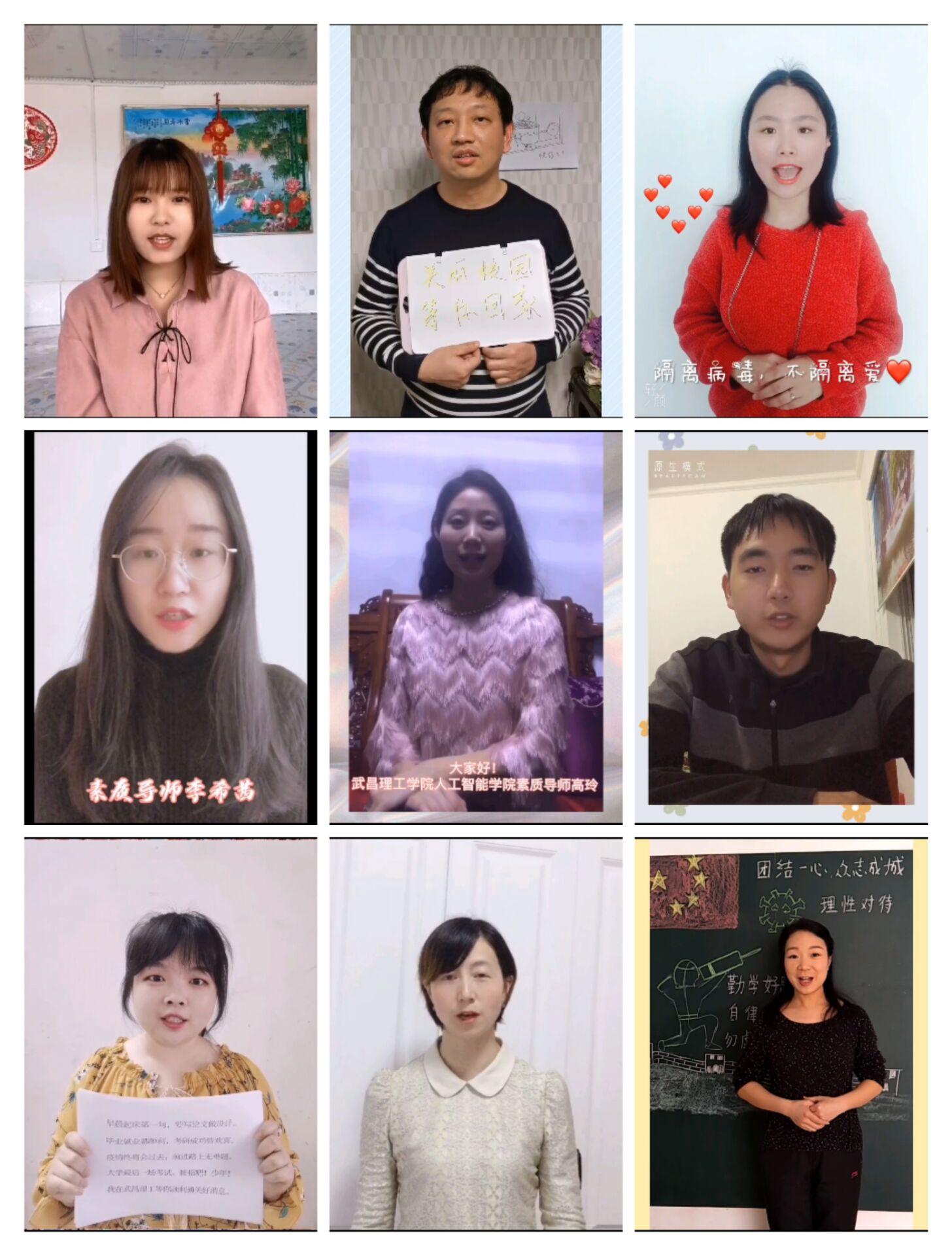 中南在线3月29日消息(大通社记者 陈宇飞 报道)在这个不平凡的假期里,新型冠状病毒肺炎疫情,时刻牵动着武昌理工学院师生的心,在抗击疫情的关键时刻,各学院素质导师温暖发声,为奋战于一线的英雄们加油打气,为理工学子传递心声,为打赢这场疫情防控阻击战传递力量。