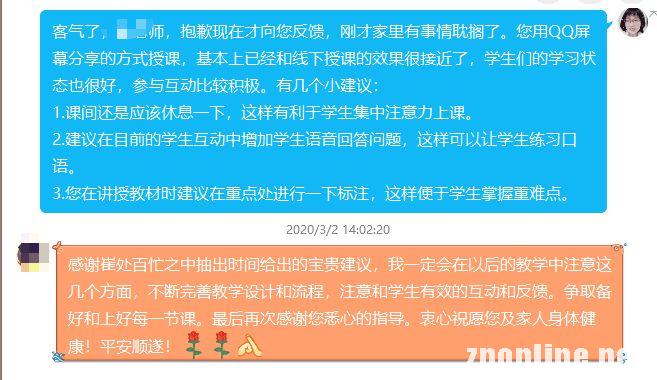 通过听课后与教师交流反馈,教师普遍认识到:线上教学不只是给学生上课,有时也可能也有家长听课,甚至还有社会人士参与,这不仅关系到学生的学习效果和教师自身的声誉,更影响社会对学校的评价。因此,教师普遍对线上教学十分重视,备课认真,教学内容充实,讲授清晰,课堂管控有力,与学生互动较多,取得了较好的教学效果。