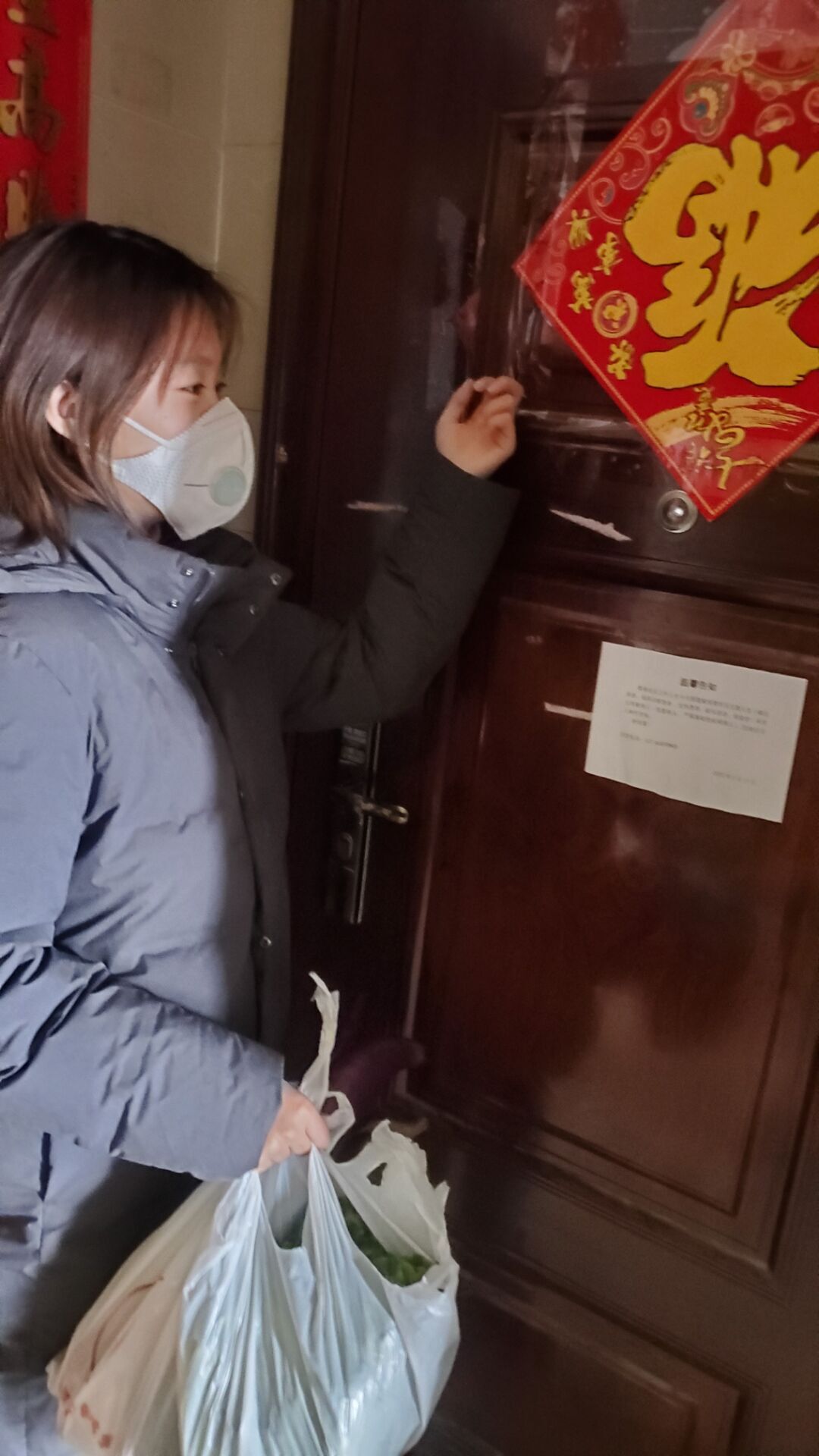 从此社区中就多了一个拎着大包小包菜在各个单元匆忙奔走的身影。就这样,她化身“送菜员”送菜上门,奔走在各个楼道中,将蔬菜中的爱与自己的爱按时送到每个人家中。“谢谢你啊,辛苦啦!”马胜男在送菜途中听到最多的就是这句话,但这简简单单的几个字足以温暖一个满头大汗的女孩子的心。在送菜的过程中,如果遇到老年人单独居住的情况,她都会停下来询问一下老人身体状况,和老人们聊聊天,如果需要帮忙的她都会积极尽自己所能去做。