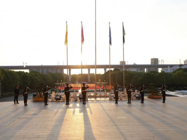 早上7时整,升旗仪式正式开始,军乐队奏响音乐,国旗护卫队迈着整齐划一的步伐,英姿飒爽的出现在行政楼前,伴随着庄重的旋律,迎着国庆节的朝阳,鲜艳夺目的五星红旗冉冉升起,国旗飘扬时,全体人员行注目礼,同学们怀揣着爱国之情共同庆祝中华人民共和国成立70周岁的生日。