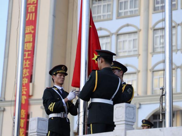 中南在线10月1日消息(大通社见习记者 王丽娜 李灵 报道)为庆祝中华人民共和国成立70周年,讴歌伟大祖国所取得的辉煌成就,引导广大学生共抒爱国情怀,大力唱响礼赞新中国、奋斗新时代的青春主旋律,10月1日早晨,武昌理工学院在行政楼前举行升旗仪式,全校数百名师生代表参加升旗仪式 。