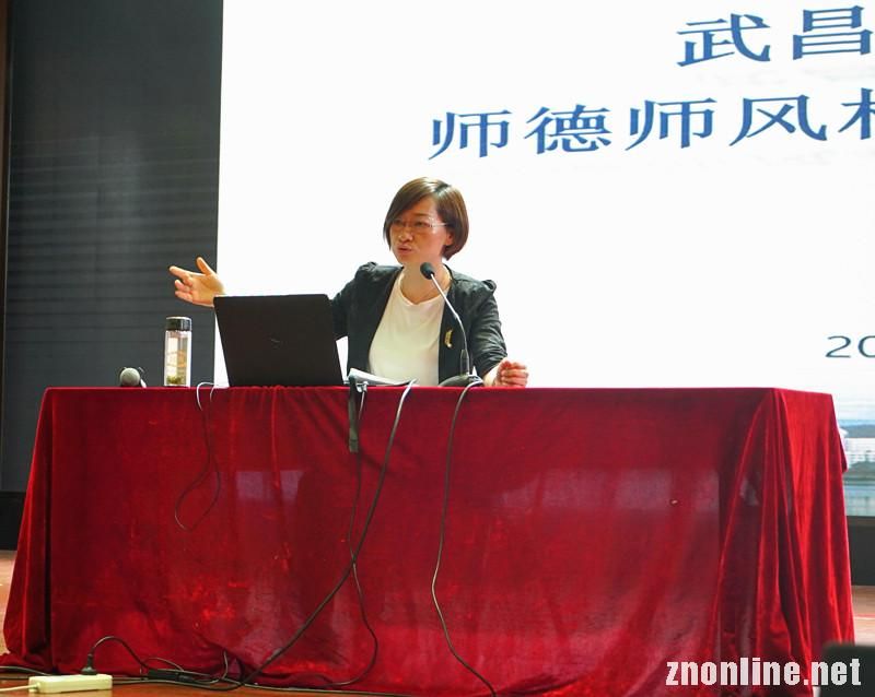 纪委书记林娟副教授对《武昌理工学院师德师风相关制度与要求》进行了详细解读。她从“师德师风积分管理办法制定的背景”、“师德师风积分管理的基本内容”、“师德师风先进典型”等三方面内容给所有参训人员上了生动的一课。她表示,在座的广大教师既然选择了“教师”这个光荣的职业,就要做有理想信念、有道德情操、有扎实知识、有仁爱之心的“四有好老师”;要做学生锤炼品格的引路人,做学生学习知识的引路人,做学生创新思维的引路人,做学生奉献祖国的引路人。她强调,高尚师德是现代化教育的重要标志,是高水平教师队伍的重要旗帜。