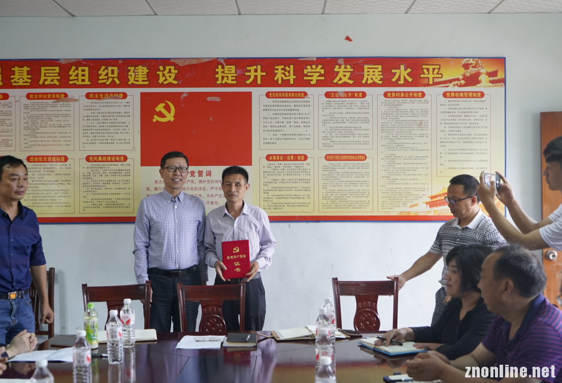 为驻村工作队第一书记丁丰国颁发“优秀共产党员”证书