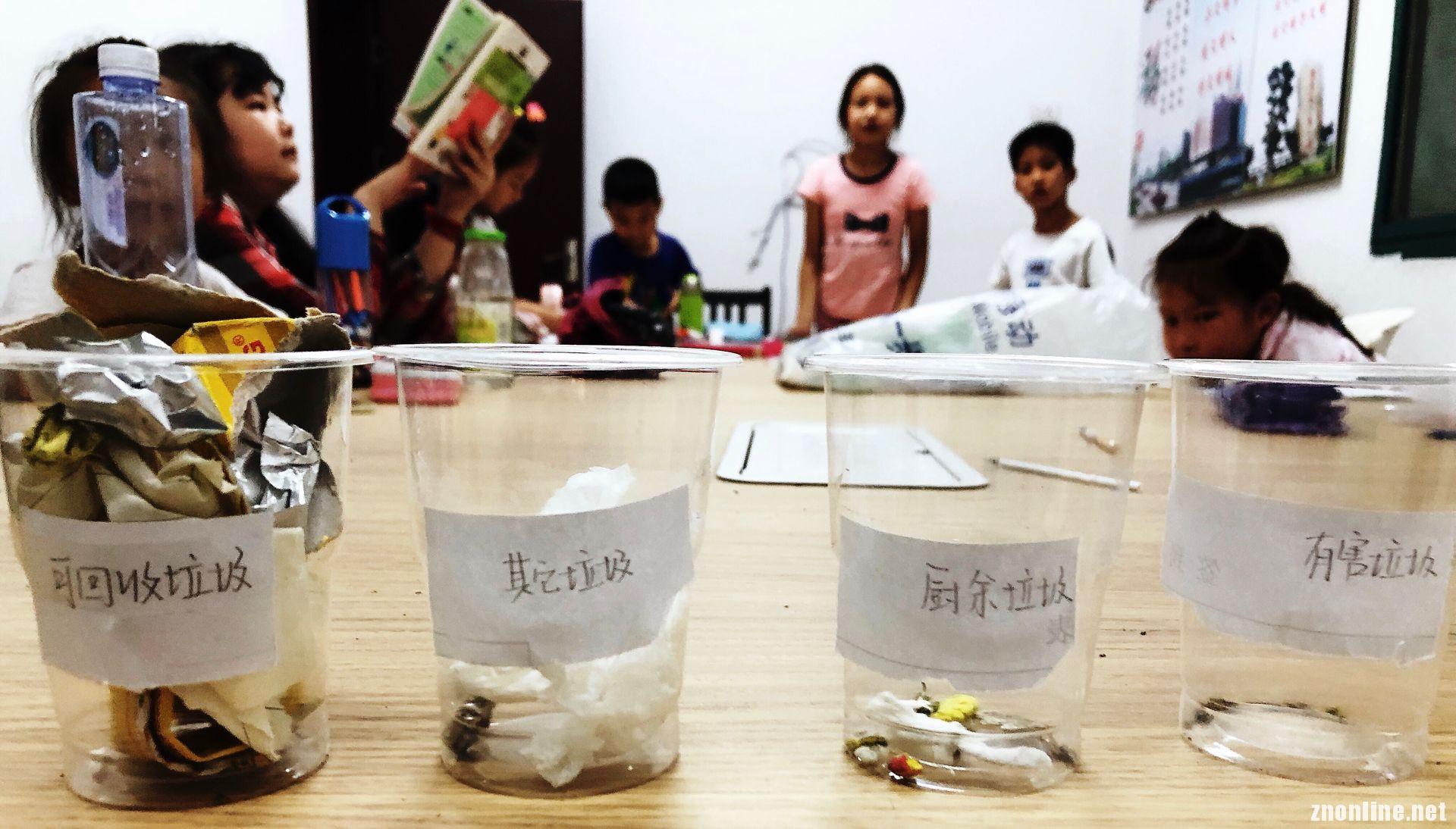 12日中午,孩子们都早早的来到了寒溪社区希望家园支教点。支教队员俞兵认真备课,精心制作PPT,给孩子们上了一堂垃圾分类课。小组长蒋英姿用塑料杯做了四个垃圾桶,分别写上:可回收垃圾、厨余垃圾、有害垃圾和其他垃圾。在学习了各种不同垃圾的分类后,蒋英姿带着小朋友们给自己的垃圾进行分类,提倡孩子们低碳生活,从我做起,从身边的小事做起。蒋英姿甚至翻出社区垃圾桶里的各类垃圾,一一为小朋友们讲解其为何种垃圾。课堂上,小朋友都非常积极,踊跃举手,回答问题,现场气氛活跃。