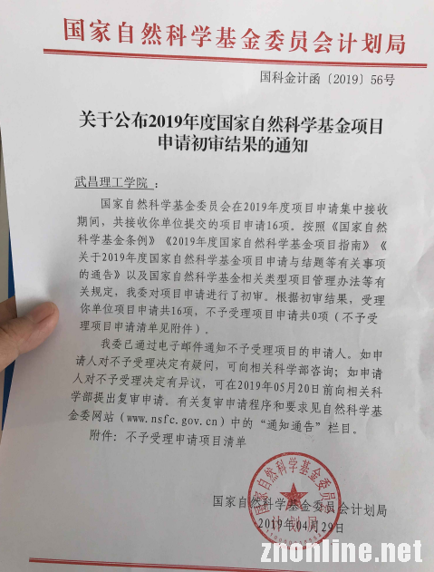 据悉,国家自然科学基金委员会在2019年度项目申请集中接收期间共接收各类型项目240711项。按照《国家自然科学基金条例》《2019年度国家自然科学基金项目指南》《关于2019年度国家自然科学基金项目申请与结题等有关事项的通告》以及国家自然科学基金相关类型项目管理办法等有关规定,自然科学基金委对项目申请进行了初审。经初审,国家自然科学基金委会共受理项目申请236890项,不予受理项目申请3821项。武昌理工学院2019年申请的16个项目中,不予受理项目申请的为0项。这意味着,武昌理工学院申请的所有项目全部通过了国家自然科学基金委的初审。