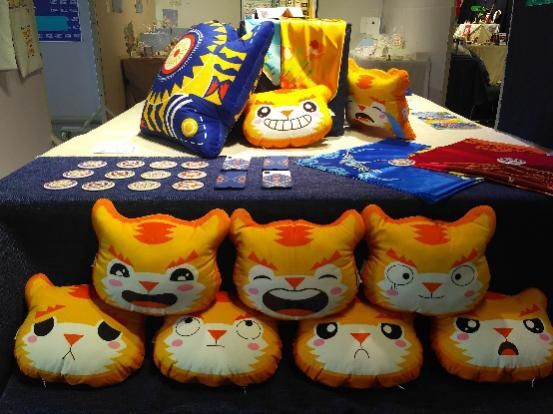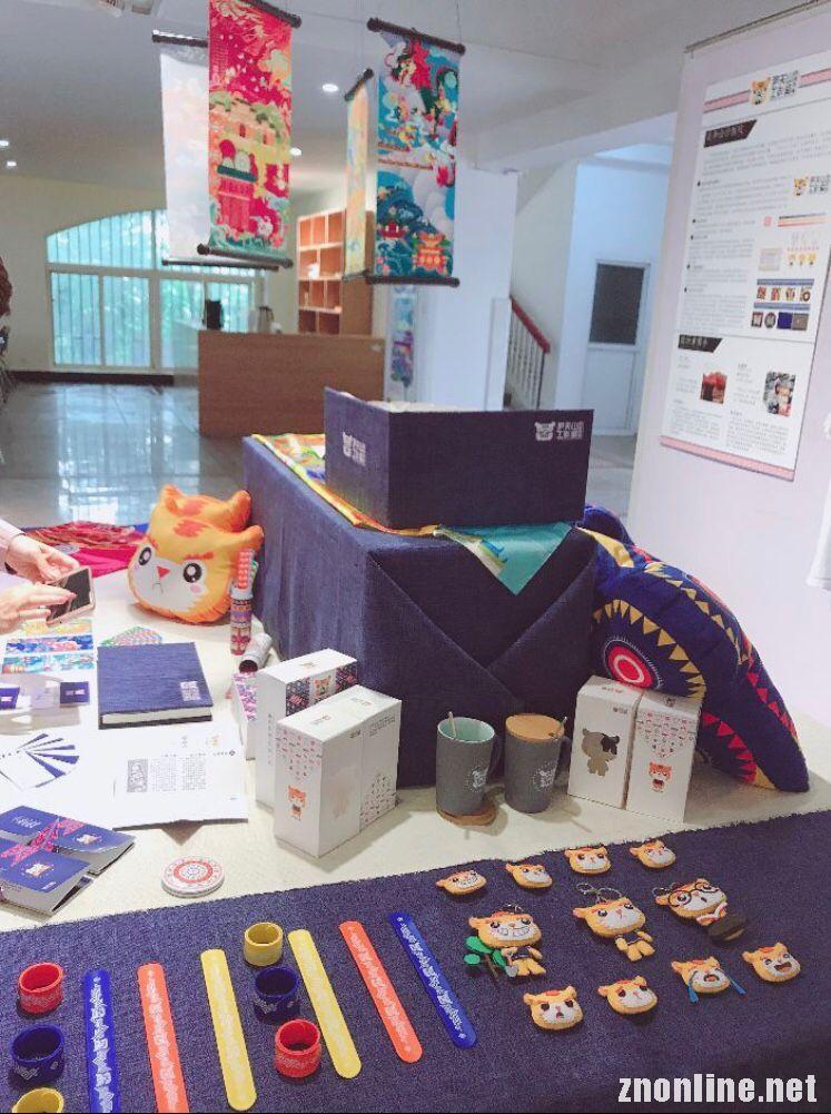 在老先生的见证下,甘一环、孔雅婷同学成功完成了工作室品牌logo设计,logo主体由布贴艺术中常见的老虎图案和“尹关山”三个汉字所组成,独具特色的老虎图案所代表的含义是对传承者的寄托与祝福,与工作室的核心不谋而合,将尹关山的姓名融入其中,指代性更强。标识整体以几何装饰的风格为主,简洁大方,独具特色。在标志的基础之上,我们创作了品牌吉祥物并衍生出文化衫、抱枕、吊扣、表情包等文创产品,保留布贴文化特色的同时,让品牌的视觉效应更具活力和时代感。