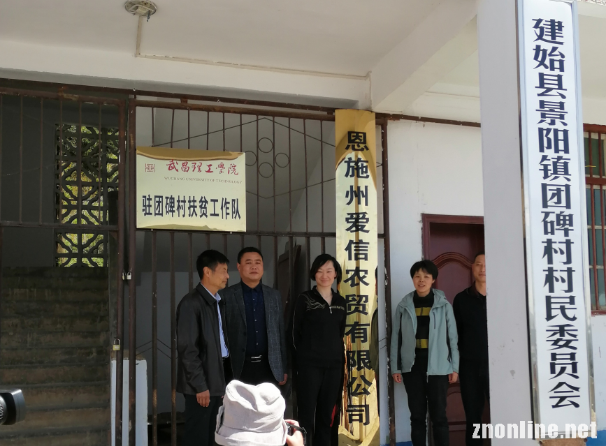 林娟与县、镇相关领导在团碑村村委会举行“恩施州爱信农贸有限公司、武昌理工学院大学生社会实践基地”挂牌仪式。实地查看了该村基础设施建设、线椒大棚育苗长势,并召开座谈会,就该村精准脱贫补短板项目、产业发展等情况进行磋商。