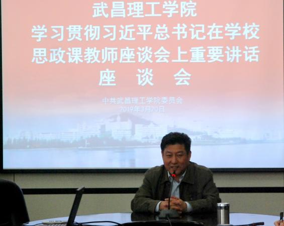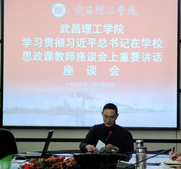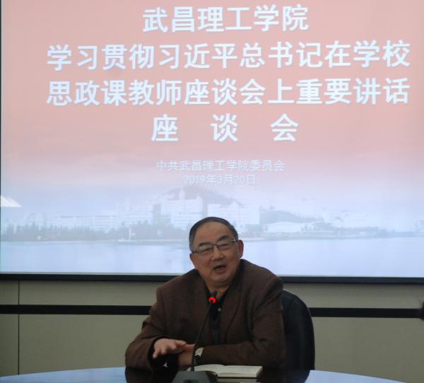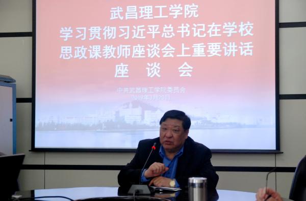 校党委常委、宣传部长邓万民教授从发挥思政课程在思政教育中的主渠道和主阵地作用,举全校之力办好思政课;让课程思政与思政课程同向同行、同频共振、铸魂育人;开动全校宣传机器,形成“大合唱”,搞好习近平总书记在学校思政课教师座谈会上讲话精神的宣传、教育三个方面做了中心发言。他表示,思政课是落实立德树人根本任务的关键课程。学校要努力建设和巩固好思想政治理论课教学的主阵地,大力推动思想政治理论课改革创新、深化信息化教学改革,不断增强思政课的思想性、理论性和亲和力、针对性。要把立德树人的根本任务贯穿全过程,着力推进“三全育人”,每一位教师要深入发掘各门课程的德育元素,充分发挥课程育人作用,在“润物细无声”的知识传授中融入理想信念层面的精神指引。广大教师要自觉与习近平总书记提出的六个方面要求对标,以德立身、以德立学、以德施教,自觉发挥积极性、主动性、创造性,用高尚的人格感染学生、赢得学生,用真理的力量感召学生,以深厚的理论功底赢得学生,做学生的表率。作为学校党委宣传部门,要做好学习贯彻习近平总书记在学校思想政治理论课教师座谈会讲话精神的宣传、教育工作,自觉用用习近平新时代中国特色社会主义思想铸魂育人。深入挖掘学校在推进“思政课程”、“课程思政”教学改革方面新途径、新办法、新成就,通过校园网,学校官方微博、微信,校报,广播台,网络电视台等媒体平台,讲好武昌理工故事,让习近平总书记在学校思政课教师座谈会上的讲话精神在学校落地生根、开花结果。