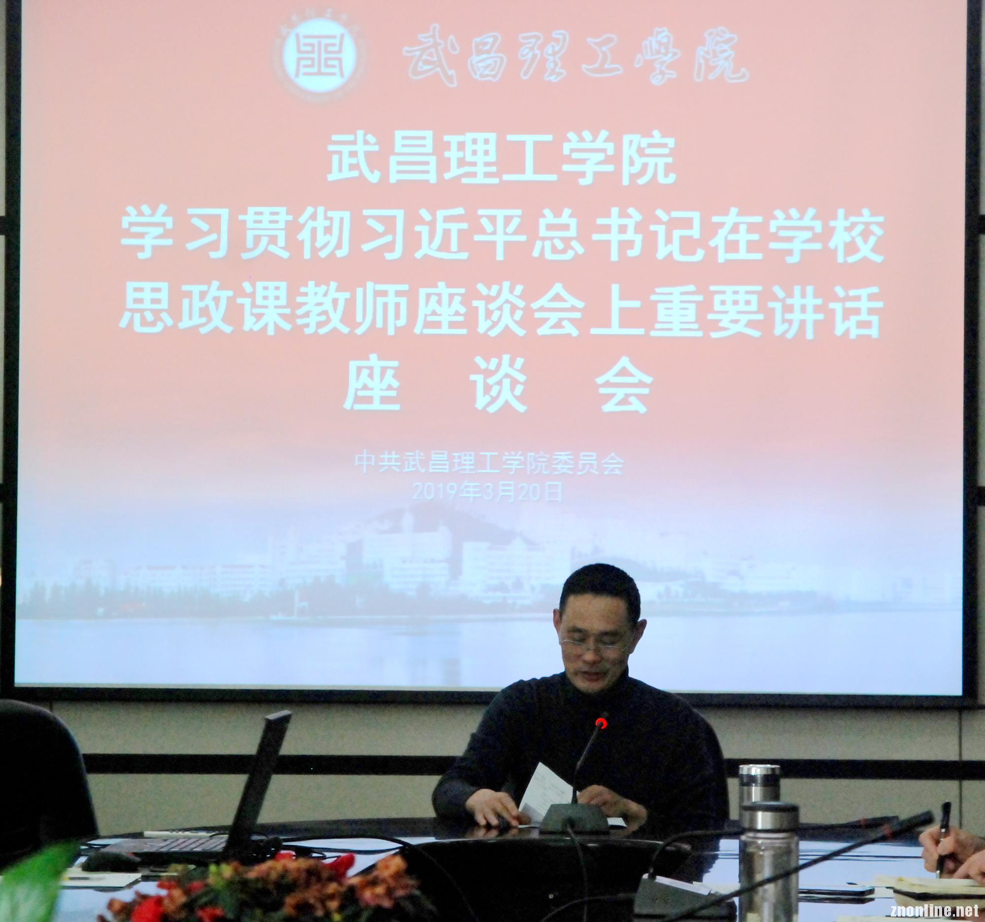 中南在线3月21日消息(记者 祝琳 报道)3月20日下午,武昌理工学院党委召开座谈会,集中学习3月18日习近平总书记主持召开的学校思想政治理论课教师座谈会精神。受校党委书记涂方剑教授的委托,会议由校党委常委、校长助理蔡贤浩教授主持,校党委委员、思政课部、特色课部教师参加会议。
