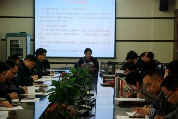校党委常委、校长助理蔡贤浩同志,校党委常委、宣传部长邓万民同志,校党委常委、校长助理刘铭华同志,监察部部长陈邦玉同志,分别领学了习近平总书记在学校思想政治理论课教师座谈会上的讲话精神、习近平总书记关于扶贫工作、巡视工作重要论述、省委教育工委省教育厅2019年工作要点、习近平六下团组讲话精神和2019年政府工作报告。