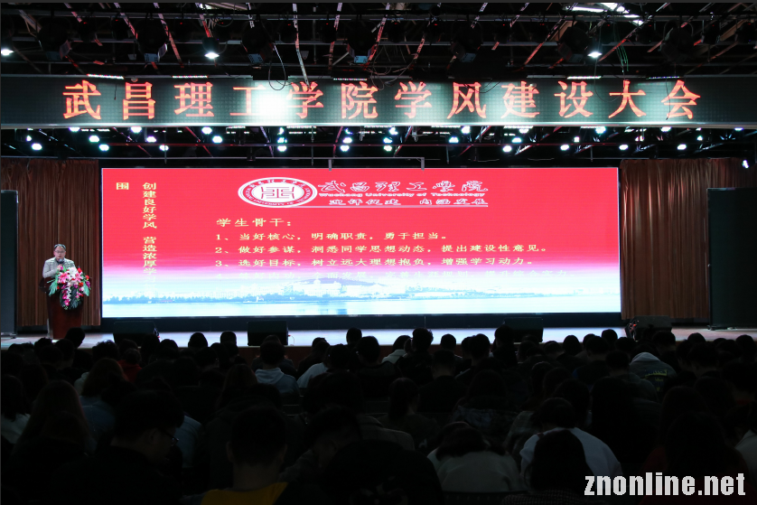 中南在线3月13日消息(大通社记者 陈宇飞 见习记者 岳俊伟 通讯员 韩凤鸣 徐琼慧 赵宇航 报道) 加强优良学风建设,营造浓厚学习氛围。3月12日晚,武昌理工学院在梅南礼堂举行“2019年学风建设大会”。学工处领导、各学院副书记、全体素质导师及各班班长、团支部书记、学习委员以及部分教师代表出席了本次大会。