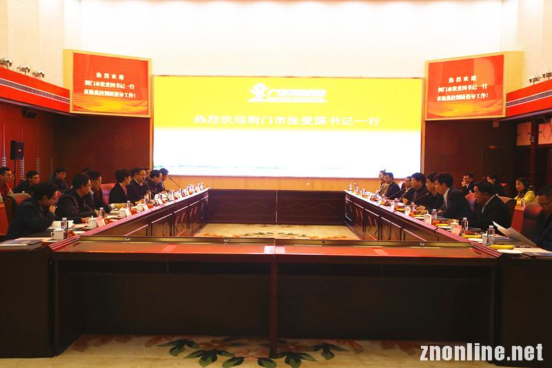 荆门市委书记张爱国代表荆门市委市政府以及300万荆门人民对广信科教集团、武昌理工学院长期以来对荆门市的发展做出的贡献表示感谢。他说,此次前来调研筹划已久,通过参观和听取介绍深受启发,感受到了武昌理工学院深厚的文化底蕴和丰硕的办学成果,成功素质教育办学理念让人印象深刻,为国家培养了一大批高素质人才。张书记指出,看到武昌理工学院能够发展成全国知名的民办高校非常高兴,看到广信科教集团在大教育、大旅游、大健康、高科技等产业前沿布局感觉很有超前眼光,赵作斌先生为家乡做出了贡献也争了光,长年以来回报家乡、投资家乡的情谊让人感动。他介绍了荆门市近年来的良好发展情况,并表示将全力支持绿林山旅游景区、丁家冲生态庄园等项目的发展。双方还探讨了武昌理工学院与荆门市在人才培养、产学融合、服务地方经济社会发展等方面的合作事宜,共商校地合作大计。