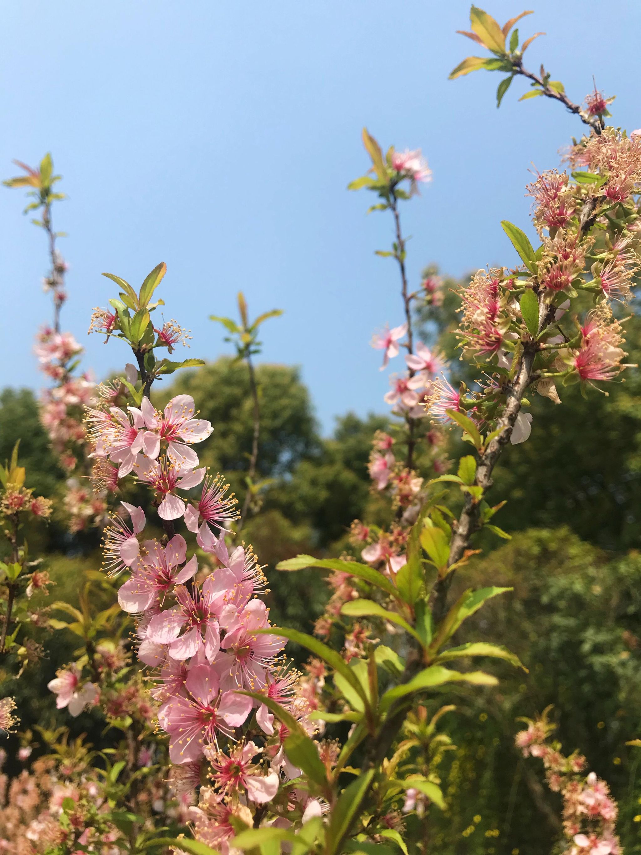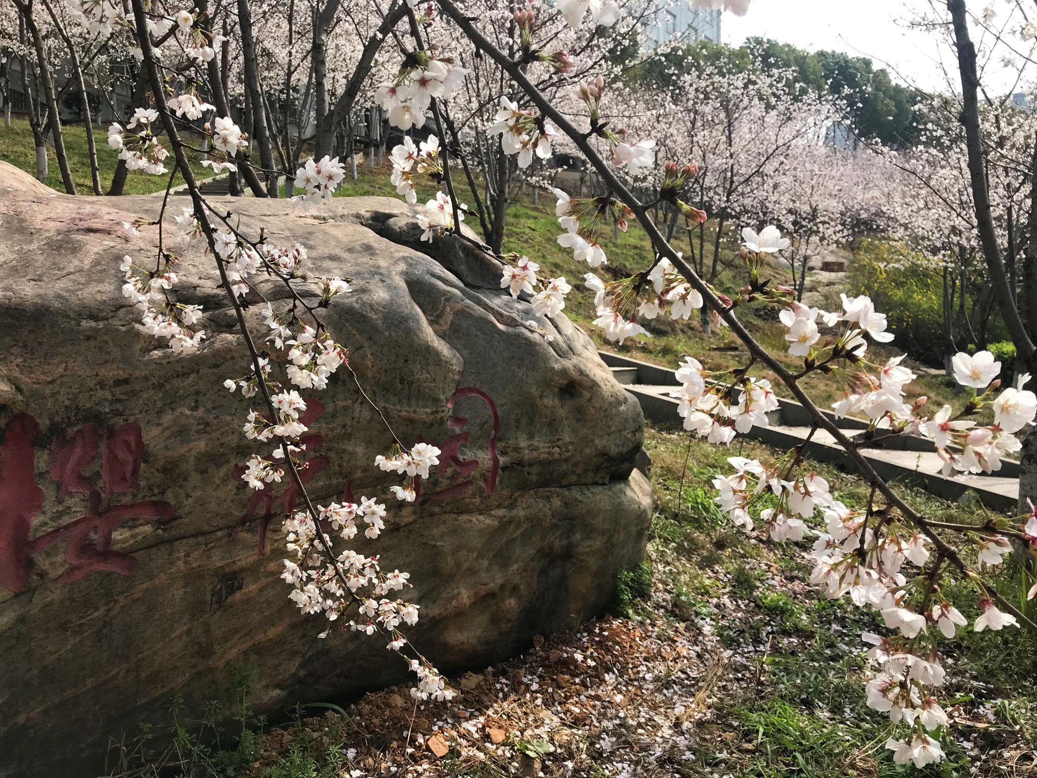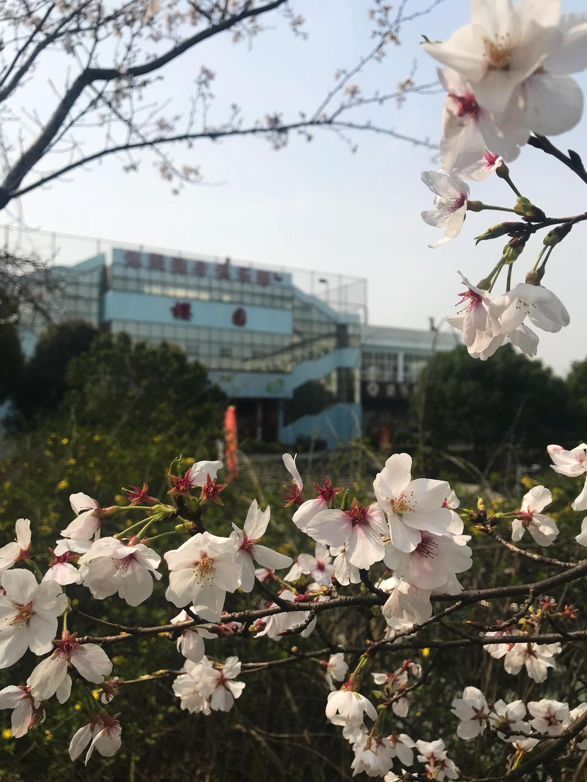 一进校园,好似来到了一所大花园,迎春花绽放着笑脸;鲜红的石楠木与耀眼的紫荆花相映间显得分外妖娆;怒放的樱花仿佛漫天的雪花纷纷扬扬,洒满校园,春风吹过,花瓣们轻歌曼舞,仿佛在迎客微笑;紫红的紫荆花就像一串串的大红鞭炮,喜庆热闹。