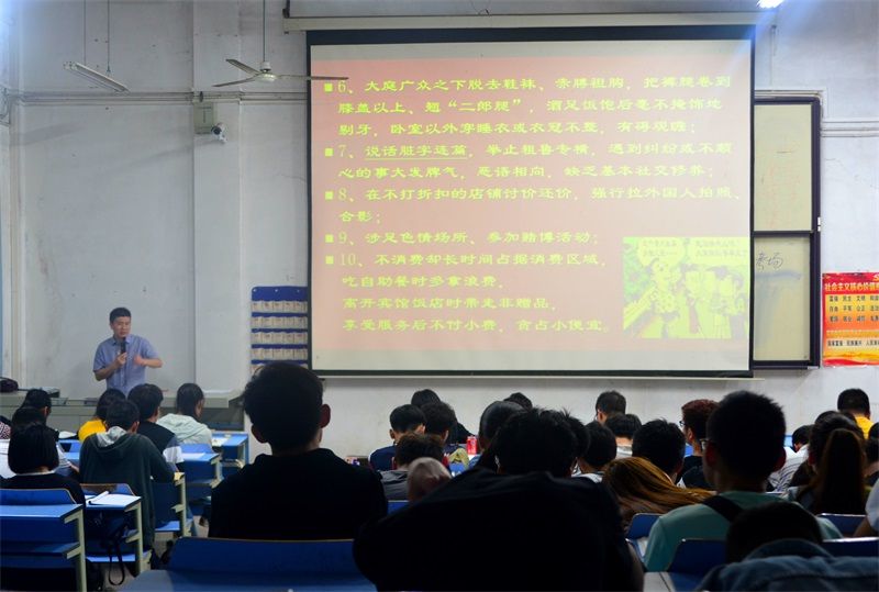 思政课上李博豪老师通过PPT为学生们展示生活中的不文明现象