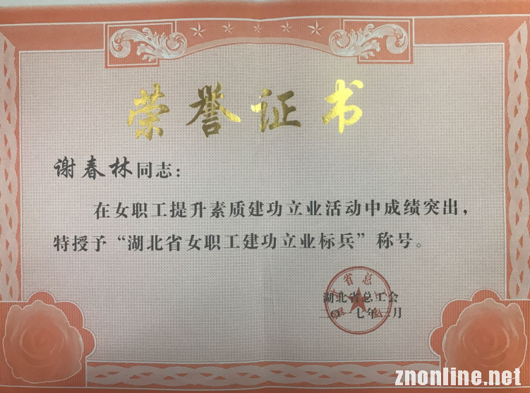 中南在线4月6日消息 近日,湖北省总工会表彰了2016年度“湖北五一巾帼奖”和“湖北省女职工建工立业标兵”等,由武昌理工学院校工会推荐的文法与外语学院大学英语系系主任谢春林同志获 “湖北省女教职工建功立业标兵”荣誉称号。本次表彰人员涵盖了全省各行各业的女职工优秀楷模,共139名女职工获此殊荣。