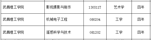 根据教育部公布的名单显示,武昌理工学院影视摄影与制作、机械电子工程、遥感科学与技术3个本科专业获批备案准予设置,分属于艺术学、工学两个学科门类,学制均为四年,机械电子工程、遥感科学与技术将于2017年面向全国招生。另悉,该校今年还或将新增空中乘务、财务管理、人物形象设计3个专科专业。
