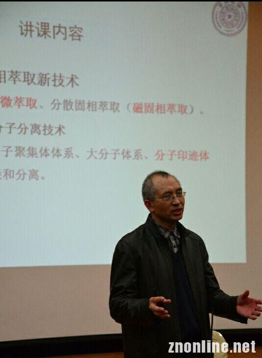 随后,丁教授就自己在清华大学的研究领域色谱、中药化学、新型分离材料等方面,给大家讲解了分离新技术等科研前沿知识。当提到电化学分离时,丁教授说,“这是我国传统的优势,得靠我们这一代将之传承和发扬,希望同学们深入学习专业知识,多发明创新创造。”最后,丁教授叮嘱同学们,英语十分重要,翻译英文文献、报告、论文是必不可少的,希望同学们能把英语学好,成为同学们手中的一把有利工具,为将来走向成功做好铺垫。