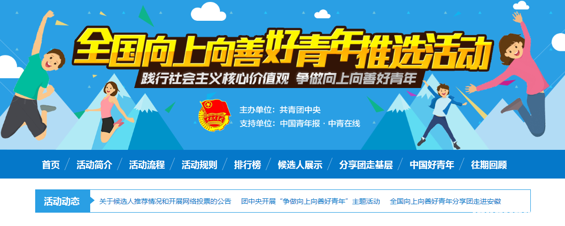 全国向上向善好青年推选活动由共青团中央主办。活动旨在深入贯彻落实习近平总书记关于青少年培育和践行社会主义核心价值观的系列重要论述和要求,充分发挥青年典型的示范引领作用,面向各行各业和基层一线,寻找、发现、推选一批模范践行社会主义核心价值观、带头传播正能量的向上向善好青年,广泛开展主题团队日、分享团走基层、学习讨论、座谈交流等教育实践活动,以可亲、可信、可学的榜样力量,树立向上向善的鲜明价值导向,引领广大青少年奋发向上、崇德向善,推动全社会形成培育和践行社会主义核心价值观的良好局面。