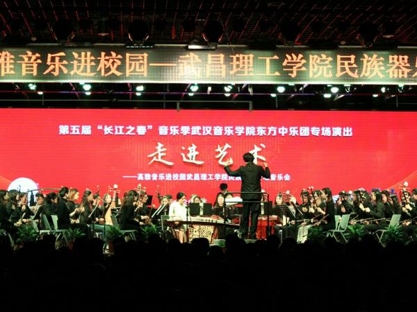 据悉,“长江之春”高雅艺术进校园专场音乐会由湖北省教育厅联合武汉音乐学院举办,活动以"走近大师、感受经典、陶冶情操、提高修养"为主题,旨在让高雅艺术走入校园、贴近学生,给广大学子带来一场民族器乐的“饕餮盛宴”。该音乐会经历五届,今年首次进入武昌理工学院校园,来自武汉音乐学院青年民族管弦乐团的100多位表演艺术家们,为武昌理工学院千余名师生及嘉宾们带来了一场高水准的音乐盛宴。于此同时,韩国水原大学代表团来校进行交流与合作,共同聆听本次音乐会。