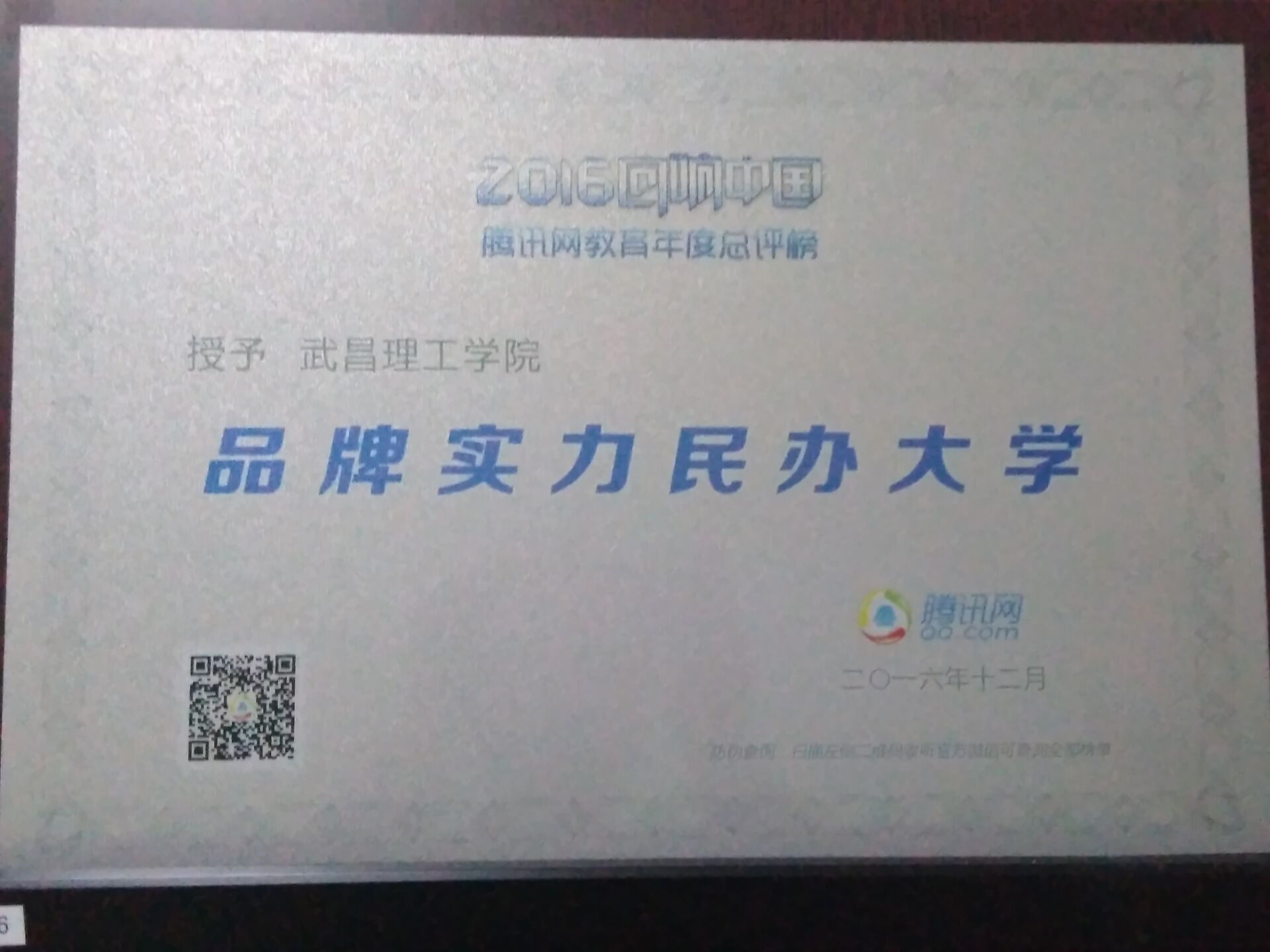 本届腾讯网教育年度总评榜,依托全球最大中文门户网站平台腾讯网和中国影响最大、最广的微信平台等,在数亿网友的参与下,历经一个月投票,结合专家顾问团的意见,而最终产生的“2016中国教育产业价值榜”,选出了最具代表性的各类精英教育机构、公司和人物。12月1日下午,在盛典现场进行了隆重的颁奖仪式。武昌理工学院在此次盛典中荣获“2016年度品牌实力民办大学”第一名,全国仅14所高校获此殊荣。