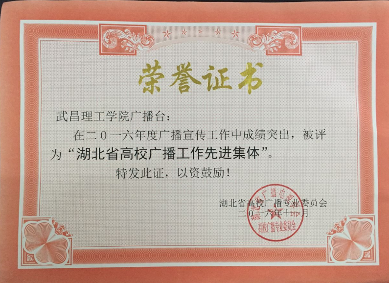 大会选举了新的协会负责人和常务理事会,武昌理工学院宣传处网站与建设科科长杨春辉当选为委员会副秘书长,武昌理工学院广播台当选为常务理事单位。选举结果当场宣布,并报湖北省教育厅和湖北省广播电视学会备案。湖北省高校广播专业委员会理事长付敦祥在会上总结了湖北省广播协会2016年的工作,并宣读了2016年广播工作的先进集体和优秀个人的名单。武昌理工学院广播台第十年荣膺“湖北省高校广播工作先进单位”称号,校广播台指导老师杨春辉被评为“湖北省高校广播先进个人”,校广播台侯婷婷、邵今令等10位同学被评为“湖北省高校广播工作优秀个人”。 武昌理工学院广播台成立于2001年,秉承“声音就是力量”的宗旨,围绕党的宣传中心,传递正确信息,营造文化氛围,正确引导校园舆论,引领校园文明,创建大学精神和大学文化。不断创新广播宣传方式,扎实开展广播宣传工作,努力为丰富校园文化生活和构建作出了积极贡献。用声音传递力量,广播台在武昌理工学院第三届校园魅力人物评选活动中,获得了“声音之魅”之称号。