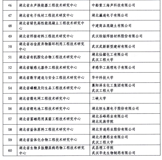 湖北省工程技术研究中心是湖北省科技创新体系的重要组成部分,是依托于湖北省辖区内的龙头骨干企业、高校和科研机构组建的具有工程技术开发能力的技术创新平台。根据《湖北省工程技术研究中心管理办法》的有关规定,“湖北省生物多肽糖尿病药物工程技术研究中心工程技术研究中心”等78个工程技术研究中心被认定为湖北省工程技术研究中心。武昌理工学院生命科学学院副院长徐拥华表示,学校与武汉华龙生物制药有限公司联合申报的“湖北省生物多肽糖尿病药物工程技术研究中心工程技术研究中心”成功获批为湖北省工程技术研究中心,对提升学校创新能力,促进学校科技成果转化,加强国际、国内合作与交流,培养高素质应用型人才提供了平台,意义重大。