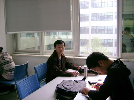 程志全在图书馆读书