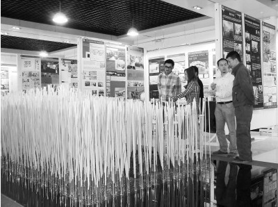 “今年开春,到江西婺源写生时,发现黄灿灿的油菜花一望无际,美极了,便萌发创作油菜花开的陶瓷作品。”《油菜花开》的作者卞晓东说,后来专程到江西省景德镇租了间陶艺室制作了1.2米长彩色陶瓷杆1500根,请了家烧窑烧制成功,然后买回墨色的玻璃、钢丝网和不锈钢架,彩色的陶瓷杆插在不锈钢网架上,黑色的玻璃作底子,《油菜花开》由此呈现。