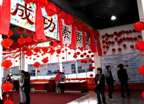 当日下午2点,校大学生活动中心装饰一新,连楼道旁边都贴出了第二届成功素质展示节的相关活动的精彩花絮。武汉科技大学中南分校第二届成功素质展示节学院成果集中展示活动在校大学生活动中心隆重举行。
