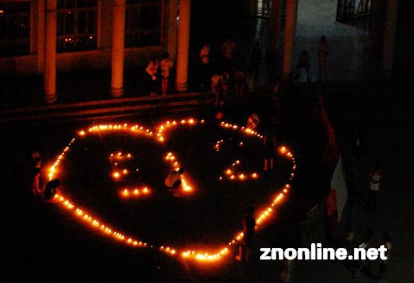 当晚7点50左右,艺术学院教学楼前,以班级为单位自愿参加的近400名学生,用365只蜡烛围成心形,点亮,静默3分钟后,集体唱起《明天会更好》,为汶川地区的受难同胞们祈祷祝福。 活动持续了近半个小时,365支跳跃的红烛爱心托起哀思,近四百名同学深深地在爱心旁边祈祷祝福。负责人说,“组织这次活动,是希望为受灾同胞祈祷祝福的同时,也增加同学们的爱心,更有助于我们的团结奋进。”其他各个学院也相继组织了汶川大地震一周年祭相关活动。(完)