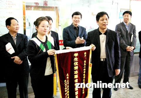 党委书记郑鹏飞为信息工程学院颁发“学生优秀志愿者管理团队”锦旗