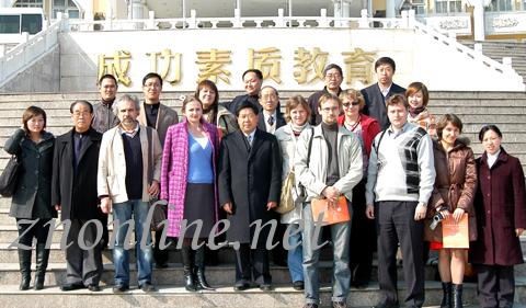俄罗斯客人在副校长孙利生的陪同下参观校园,客人们看到美丽的校园环境,纷纷拿出相机拍照留恋。参观校园后,校长赵作斌教授在六楼会议室会见了来访客人,副校长吴开胜代表学校向俄罗斯客人介绍了学校成功素质教育办学理念,学校在教育教学方面所做的改革和取得的成绩以及学校今后的发展方向等。