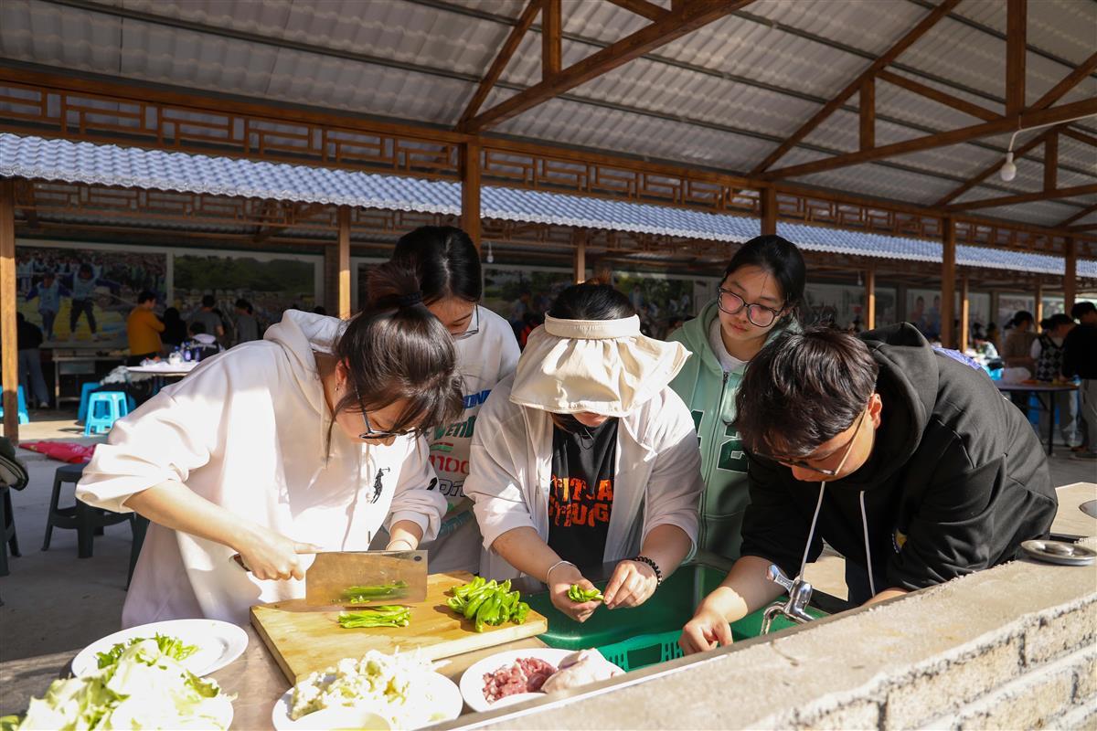 其中,做一顿土锅柴火饭菜,也成为大学生们的一堂“必修课”。