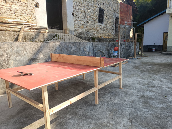 长江日报大武汉客户端2月18日讯 乒乓球桌、呼啦圈、俯卧撑架、篮球架、单杠、杠铃……2月18日,这个寒假,武昌理工学院大四学生陈飞飞利用旧物回收,在恩施老家为自己打造了一个“户外健身房”,健身器材一应俱全。