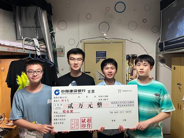 同寝室3人一起被表彰,西四606寝室也因此被同学们称为“学霸宿舍”。