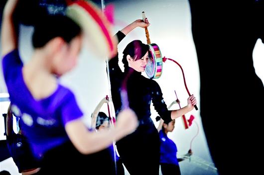图为:业余时间教孩子学舞