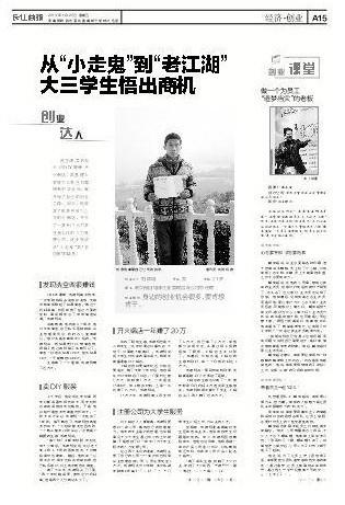 长江商报消息 洗空调、卖折扣卡、印DIY服装、开火锅店,武昌理工学院大三学生刘德明高中毕业后,就开始了自己的创业之路。如今,他放弃了旺季月收入上万的火锅店,开办了一家专门为大学生找工作的人力资源公司,逐步完成从“小走鬼”到“老江湖”的蜕变。