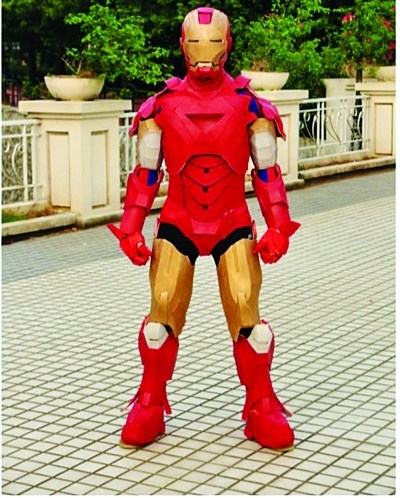 手工制成钢铁侠的是网友-Elis-,记者在他的新浪微博页面上看到了让人“眼红”的钢铁侠组图。